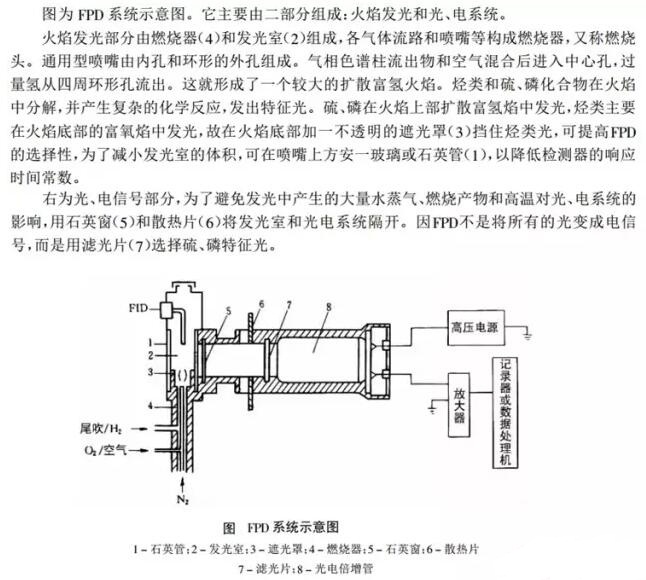 FPD是一種高靈敏度和高選擇性的檢測器,其特征是對硫為非線性響應。它是六個最常用的氣相色譜儀檢測器之一,主要用于含硫、磷化合物、特別是硫化物的痕量檢測。近年也用于有機金屬化合物或其他雜原子化合物的痕量檢測。