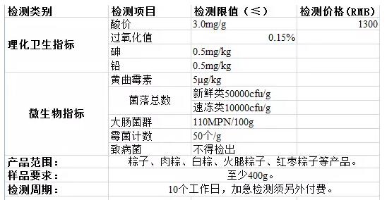一、粽子檢測(cè)項(xiàng)目與檢測(cè)限值