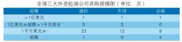 下表列出了國家三大巨頭檢測(cè)公司最近收購數(shù)量與規(guī)模情況:
