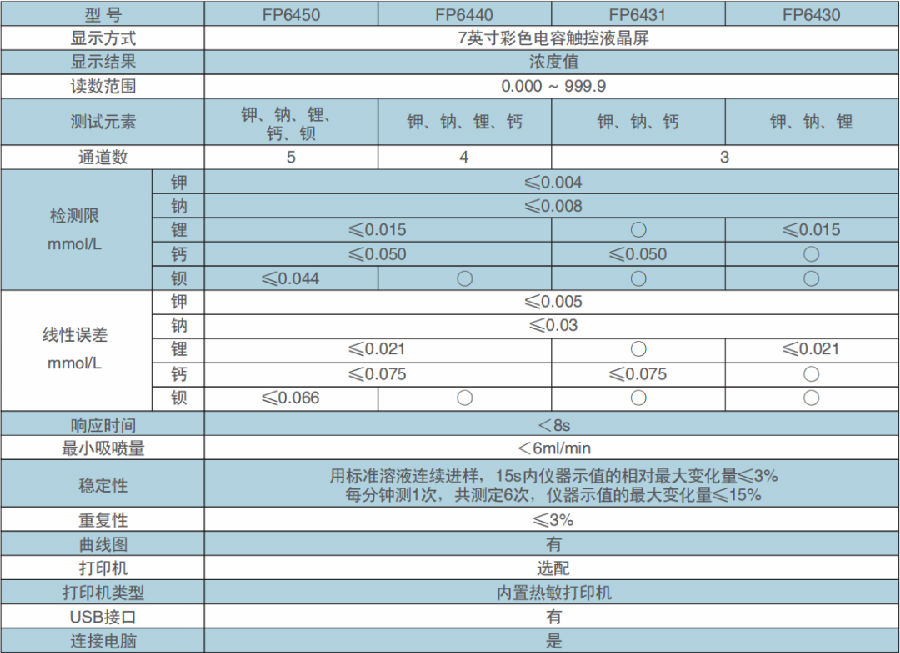 K:檢測限≤ 0.004mmol/L;Na:檢測限≤ 0.008mmol/L